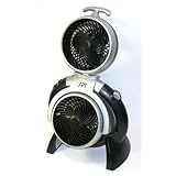 Combining innovative design with improved air circulation, this unique high-velocity dual floor fan makes the perfect addition to any home, office, or workshop. The unit features two individually rotatable fans with 10-inch blades: an upper fan that rotates up to 180 degrees, and a lower fan that rotates up to 90 degrees. Each fan can be independently controlled; choose from low, medium, or high speed settings. Even more, its frame pivots up to 90 degrees, changing the shape of the unit from double stacked fans to side-by-side fans. Direct refreshing airflow wherever it's needed most. By placing it in the hallway, the unit can even be used to cool two rooms at the same time. Other highlights include handy side-mounted controls, protective grates, and a convenient carrying handle for easy transport. The ETL-approved dual floor fan measures 9 by 16 by 27-1/2 inches and carries a one-year limited warranty.
